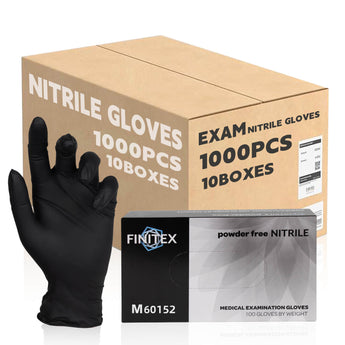 FINITEX Black Nitrile Gloves (3.2 Mil, Case of 1,000) offer medical-grade durability with exam-level protection. These powder-free, latex-free gloves feature a textured grip for superior control, making them ideal for healthcare, food processing, and industrial applications. The tear-resistant material provides reliable barrier protection against oils, chemicals, and contaminants while maintaining exceptional tactile sensitivity.